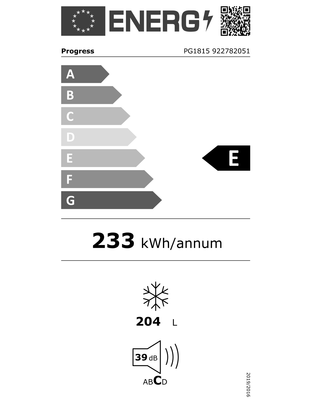 Energijski razred E, tehnologija No‑Frost, Z zamenljivim tečajem, hitro zamrzovanje, 5 prozornih predalov, vizualni in zvočni alarm za temperaturo in odprta vrata, LCD‑zaslon. Dimenzije (V × Š × G): 177,2 × 54,6 × 54,9 cm.