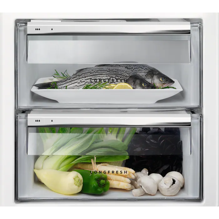 Opremljen je s tehnologijo LongFresh 0 °C, ki omogoča daljše ohranjanje svežine občutljivih živil, ter sistemom 360° Cooling / DynamicAir, ki zagotavlja enakomerno kroženje zraka. Funkciji Coolmatic in Frostmatic omogočata hitro hlajenje in zamrzovanje, medtem ko CleanAir filter preprečuje neprijetne vonjave. Elegantno upravljanje na dotik in tiho delovanje zagotavljata vrhunsko uporabniško izkušnjo.
