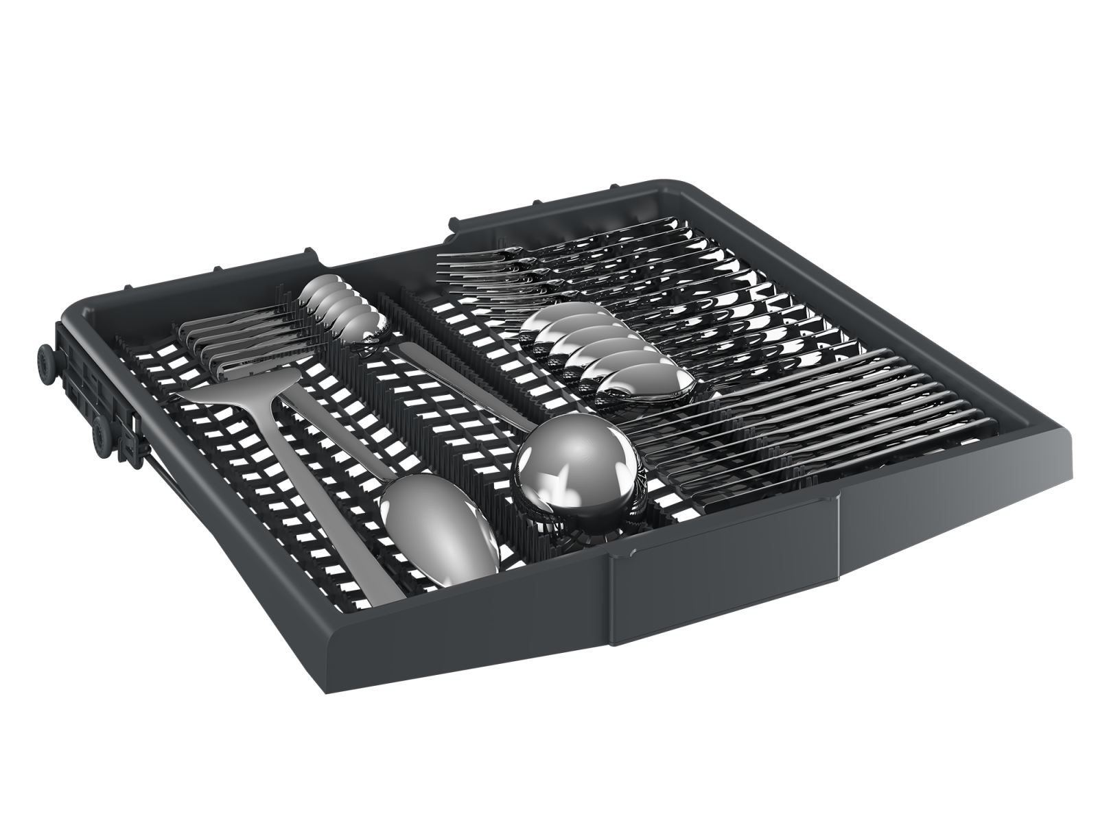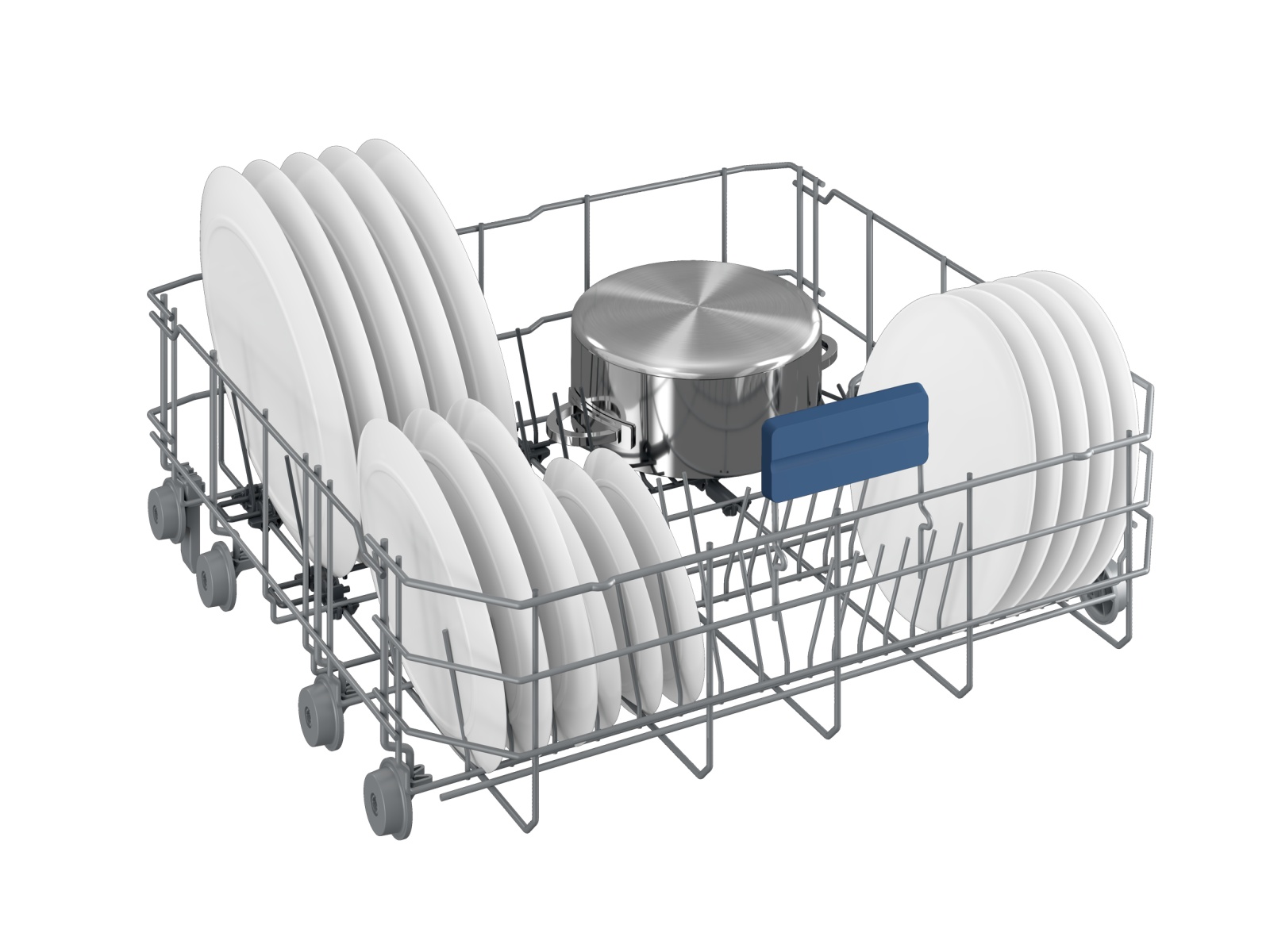 | Oprema: Košara za posodo | Police za skodelice v zgornji košari: zložljive. Zložljivi držali za krožnike v zgornji košari – nastavljivi po višini. Zložljivi nosilci za krožnike v spodnji košari in nastavljivi po višini. |
