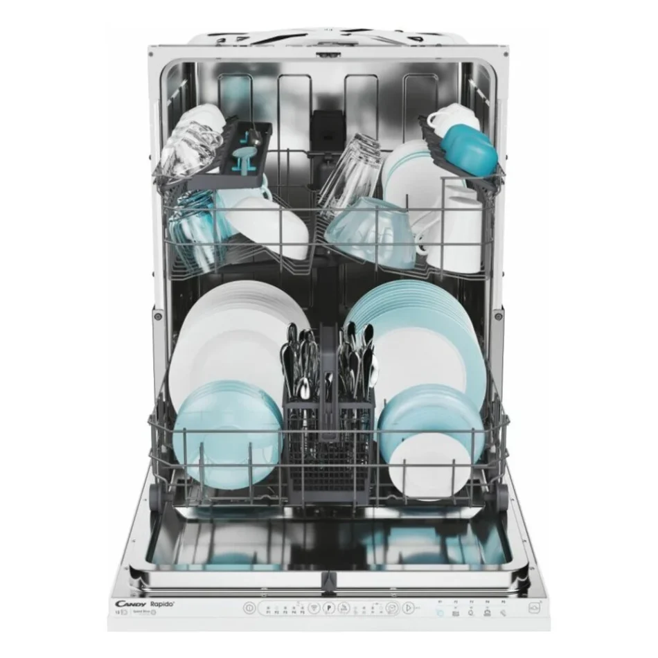 Vgradni pomivalni stroj Candy CI3E7L0W1, energijski razred E, širina 60 cm, kapaciteta 13 pogrinjkov, 5 programov, Smart Door samodejno odpiranje vrat, tiho delovanje, zamik vklopa, enostavno elektronsko upravljanje.