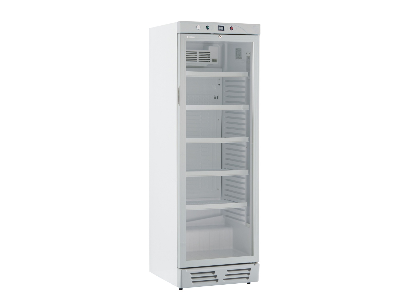 Hladilnik EKG 390 VG je zasnovan za maksimalno vidnost vaših izdelkov. Opremljen je z dvojno vertikalno LED osvetlitvijo dolžine 105 cm, ki enakomerno osvetli vseh 5 nastavljivih polic. Steklena vrata s tehnologijo Anti-appannamento / Low-e preprečujejo rošenje in zagotavljajo kristalno čist pogled na vsebino, hkrati pa izboljšujejo izolacijo. Za natančen nadzor temperature (0° do 10° C) skrbi vgrajen digitalni termometer. Ker je varnost v gostinstvu ključna, je hladilnik opremljen s sistemom za samodejno zapiranje vrat ter ključavnico za zaklepanje. Robustna konstrukcija vključuje kombinacijo dveh nogic in dveh kolesc, kar omogoča stabilno postavitev in hkrati enostavno premikanje naprave med čiščenjem prostora. Uporaba ekološkega hladilnega plina R290 zagotavlja visoko učinkovitost in skladnost s sodobnimi okoljskimi standardi. Notranjost je prostorna in prilagodljiva, saj 5 močnih polic (493 x 360 mm) omogoča poljubno razporeditev glede na velikost embalaže, od pločevink do visokih steklenic.
