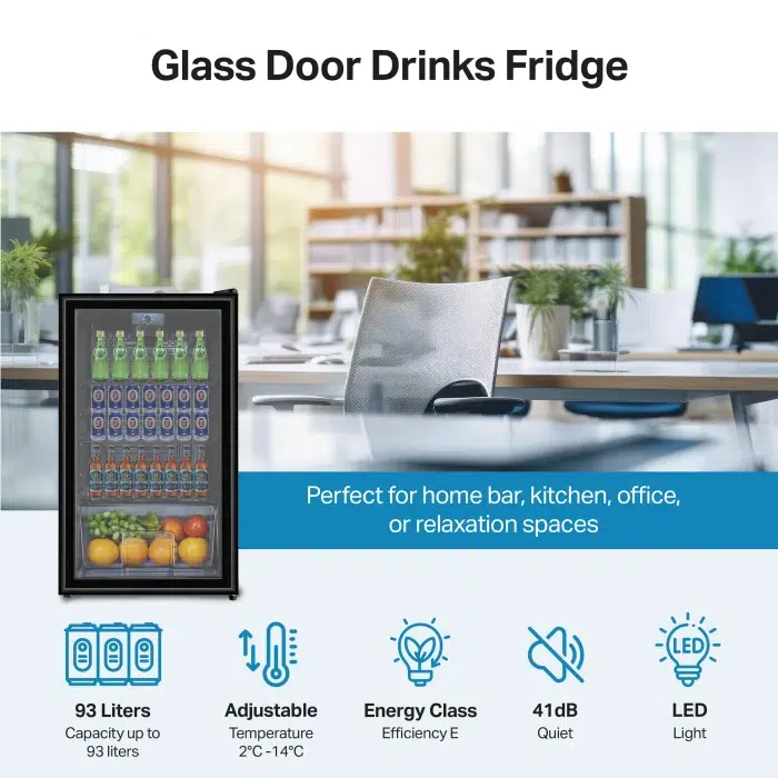 Hladilna vitrina deluje izjemno tiho, zato je primerna tudi za pisarniška okolja ali prostore za prosti čas, kjer hrup ni zaželen. Z energijskim razredom E in nizko letno porabo energije predstavlja stroškovno učinkovito rešitev za profesionalno ali domačo uporabo.