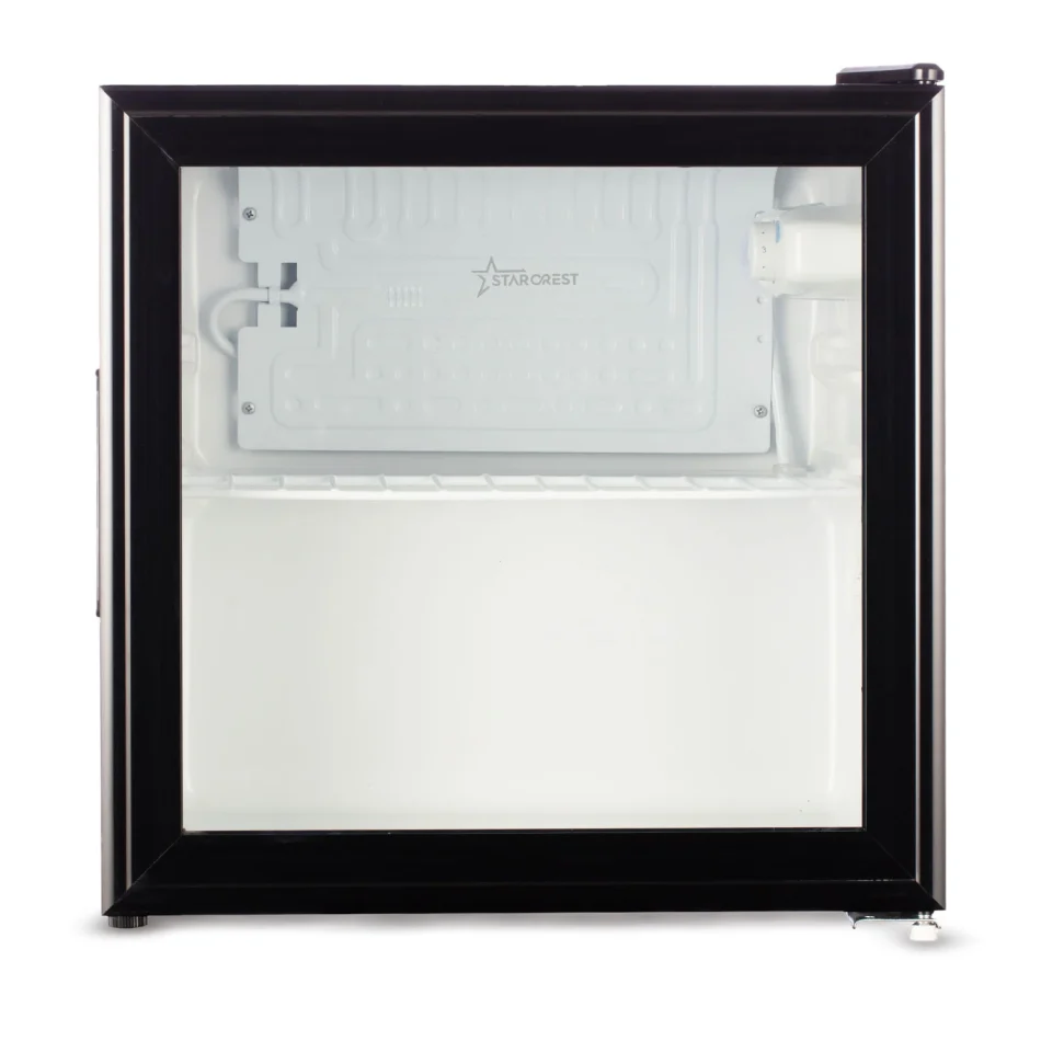 Starcrest SBC-50BKE je kompaktna hladilna vitrina za pijačo s prostornino 46 litrov, idealna za pisarne, manjše kuhinje, bare ali terase. Zahvaljujoč steklenim vratom omogoča eleganten prikaz vsebine, medtem ko LED osvetlitev poskrbi za dobro preglednost in moderen videz. Temperaturo lahko enostavno nastaviš z mehanskim termostatom v območju 2–12 °C, kar omogoča optimalno hlajenje pijač. Zaradi majhnih dimenzij in tihega delovanja je odlična izbira kot minibar ali dodatni hladilnik.