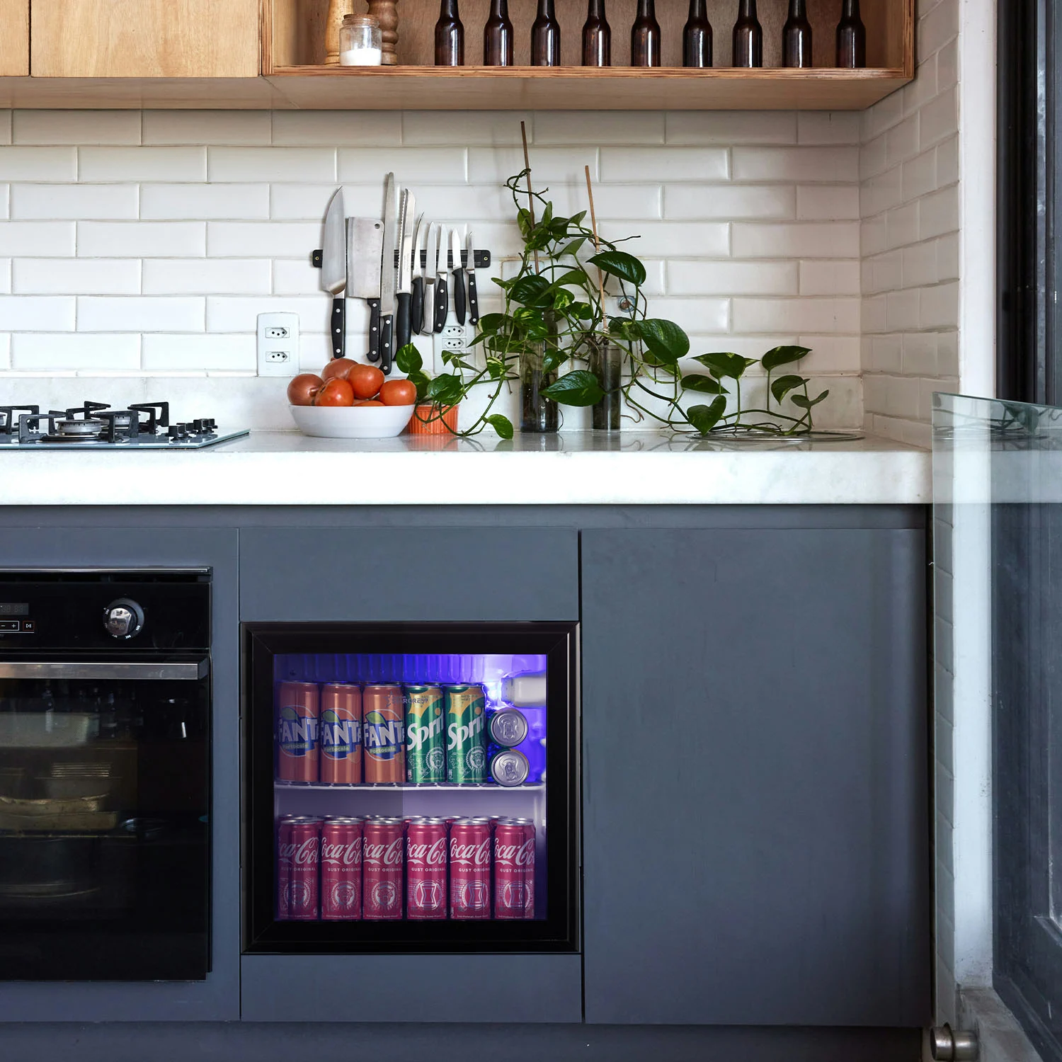 - ✔ Steklena vrata + LED – lep prikaz pijač